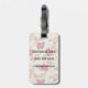 Beautiful colour peony pattern on green luggage tag