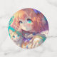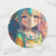 Anime Birthday confetti. Beautiful Anime girl with pastel colours, Colours used are pink, teal, orange, blue, purple and blue. Cute and colourful children's Ai art. generatviecontent