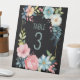 Floral vintage watercolor wedding table number sign with the design of flowers wrapped around into a frame, with the colours of pink, blue, green and a black background. Very pretty and cute.