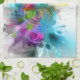 This is a stunning artwork featuring a vibrant assortment of watercolor splatters, flowers, leaves, and snowdrop effects. The confetti dots add a magical touch to the overall design, while the treble clef music note image is simply awesome. The piece is filled with a harmonious blend of pink, purple, violet, orange, green, peacock blue, teal, mint green, grey, and white colours, giving it a trendy and magical feel. It's an elegant and fashionable piece that would be perfect for any music lover.