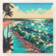 Beautiful Comic Pop Art Style Beach Scene Glass Coaster