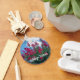 Beautiful photography of a crepe myrtle tree decorates this nature photo keychain that is filled with pretty pink flowers under a gorgeous blue sky.