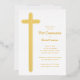 Elegant first communion invitations feature a real gold foil cross and your details in chic lettering. Perfect for your child's first communion, baptism or christening. MATCHING items available in our collection.