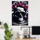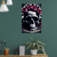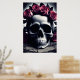 A dark and gothic painting of a human skull surrounded by pale gothic roses and petals, featuring a creepy desaturated gothic atmosphere and otherworldly atmosphere, this gothic poster is perfect for lovers of dark gothic skulls and dark romantic gothic flowers and roses.