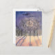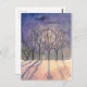 Silhouetted winter trees cast long shadows across a snowy landscape. Original watercolor.