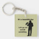 Falconers live to hunt with their birds. A silhouette of a falconer with his bird. The words It's a beautiful day Let's go out and kill something surrounds them. Customisable background colour to suit your taste.