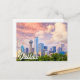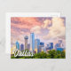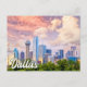 This vibrant travel postcard features a photograph overlooking of the city of Dallas, Texas, at sunset. This postcard would make a truly warm greeting for best friends and family.