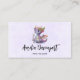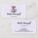 Business cards with an illustration of a mythical dragon. Purple and blue scales. A flowered gold crown with horns adorns its head. Magical, fun and friendly.