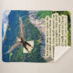 Beautiful Scripture Sherpa Blanket of a colourful, detailed scene with a glorious Bald Eagle spreading its wings and flying high in the blue sky above a plush green valley next to the foothills of a mountain. This scene accompanies the Bible verse, "But they that wait upon the LORD shall renew their strength; they shall mount up with wings as eagles; they shall run, and not be weary; and they shall walk and not faint." Isaiah 40:31. This Sherpa Blanket makes a wonderful gift or can be used to remind us of the Word of God.