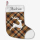 Beautiful elegant design monogrammed tartan brown small christmas stocking