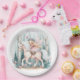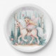 Beautiful fairy girl riding in an enchanted forest paper plate