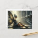 Beautiful Fairy in a black dress sitting on stairs Postcard