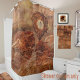 This shower curtain goes well with wood, or wood like tiles, or woody luxury vinyl flooring.