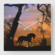 A horse with a country gate and oak tree in a southwester sunrise, this cute clock is a great colourful addition to any decor.