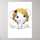 This adorable animal drawing shows a happy baby elephant with yellow hair and a red rose in her hair. Next to this small elephant grass this work is without background. Makes a great birthday, Christmas or other holiday gift for animal lovers as well as kids