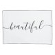 Beautiful is written on one side in elegant black lowercase script typography against white background. Personalise NAME on backside inbetween special boxed symbols to keep scripted ends. Nice alone or as couple bedding decor. Visit my store for matching handsome male name pillow. Click customise to increase/decrease scale name size. Original designs by TamiraZDesigns.