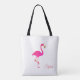 Beautiful magenta flamingo and stylish calligraphy on white Tote Bag.