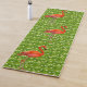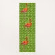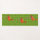 Beautiful Flamingos and White Flowers on Green Yoga Mat