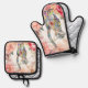 Beautiful Floral Cat Quilted Oven Mitt & Pot Holder Set
