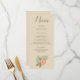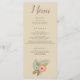 A beautiful beach design, this dinner menu features lovely brown font on a beige background. Easy fill in the blank templates, there is a beautiful blue and peach flower at the bottom. Customise yours today!