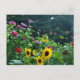 romantic old-fashion garden with daisies, cosmos and sunflowers - lined in the back with white pines.