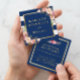 Make a great impression with this stylish "Beautiful Floral Gold Frame Navy Blue White Striped Square Business Card" template. Create yours today!