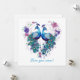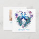 A beautiful pair of peacocks making a heart shape with flowers and tail feather plumes. "Love you mum!" text template underneath design on front, while a photo template and signature line template on back.