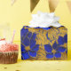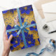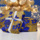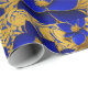Beautiful floral pattern for gift wrapping paper in International Klein Blue and gold repetitive images.