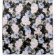 This product boasts a beautiful floral pattern with roses, Iris, and greenery on black background - Colours: pink, blue, green, black, white