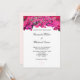 Elegant Bougainvillea flowers on white Wedding Invitation. The back side has two hearts on light gold rose background. Bougainvillea flowers are welcoming and beautiful. Floral marriage invitation cards.