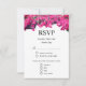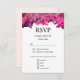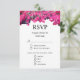 Elegant magenta red floral header on white Wedding RSVP Cards. The back side has light gold rose background. Bougainvillea flowers are welcoming and beautiful. Modern Floral Marriage cards.