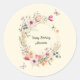 Beautiful Floral Wreath and Butterflies Birthday Classic Round Sticker