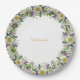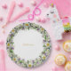 Beautiful flower crown wreath in white & violet on white Paper plate. Text can be personalised. Ideal for wedding, birthday, anniversary and other events.