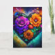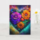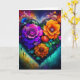 Valentine's Day card that can be personalised on the inside so you can add your own custom message. Front has a beautiful ai illustration of purple, blue and orange flowers inside of a heart.