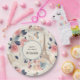 Paper plates with a lovely French themed pattern. Pretty flowers and an Eiffel tower and butterflies. Colours include pink, blue, peach and cream.