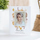 This beautiful memorial photo thank you card features beautiful watercolor botanical illustrations on a classic white background, a single vertical photo, and simple yet elegant typography on the front. On the inside there is text to write a poem, scripture, or invitation to a celebration of life, etc. on one side and space for a hand-written message on the other side. You can also remove the text on the inside and add another photo if desired, just by clicking on "edit with design tool".