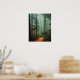 Beautiful and serene AI assisted fantasy digital art poster print features wooden path thru misty forest trees.