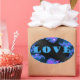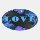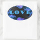 Beautiful Galactic Blue Love Text Pattern Design, Oval Sticker