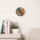 Wall Clock, 25.4 cm Round Black Wooden Frame