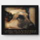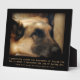 A memorial to our pets who are gone from this earth but alive in our hearts. A gorgeous German Shepherd Dog lays sleeping. Up against a dramatic, black background, it makes a stunning tribute. A wonderful remembrance gift for that special person who lost that special pet. Keep the plaque as it is or personalise with your own pet's name or other info you wish to include.