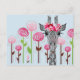 This artsy colourful giraffe has a pretty flower crown on her head. She is surrounded by pink flowers. This post card can be used for any holiday or just to say hi! I miss you!