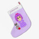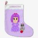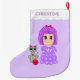 Beautiful girl and her cat on violet background personalised stocking. Merry Christmas!