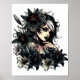 Beautiful Goth Girl Black Lilly Flowers art Poster