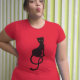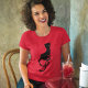Customisable elegant red T-shirt with a beautiful illustration of a gracious evil black cat with glowing eyes on a night watch.