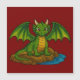 Beautiful embroidered green dragon sitting on a rock. Please note, it is not an embroidery, but an image of embroidered dragon.
