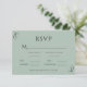 This beautiful wedding RSVP is perfect for any season wedding. The soft green background and elegant scrolls accent the details of this lovely response card. 100% customer satisfaction with “Zazzle” A perfect RSVP for your special day.