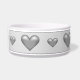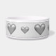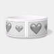 Destei's illustration of silver grey colour hearts in two different sizes. The background colour is light grey and the top and bottom have a thin border.