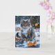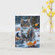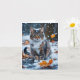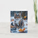 Beautiful Grey Tabby Cat Fall Leaves Blank Card