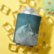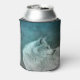 Can cooler with a photograph of a gorgeous furry fluffy grey wolf. In the background is a dark forest with trees. Magical mystical vibe.