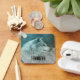 Personalised keychain with a photograph of a gorgeous furry fluffy grey wolf. In the background is a dark forest with trees. Magical mystical vibe.